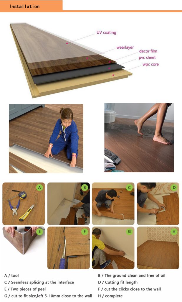 Los pisos SPC compuestos principalmente de piedra caliza natural y cloruro de polivinilo, componentes que los hace resistentes a diferentes condiciones climaticas y permite la instalación en espacios interiores de uso residencial o comercial.
